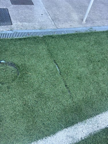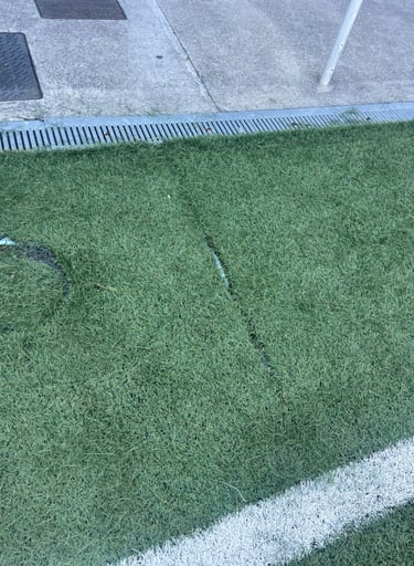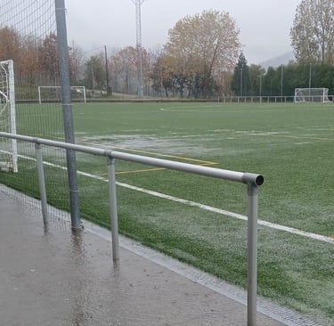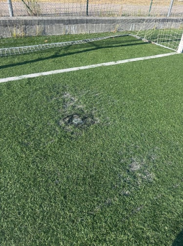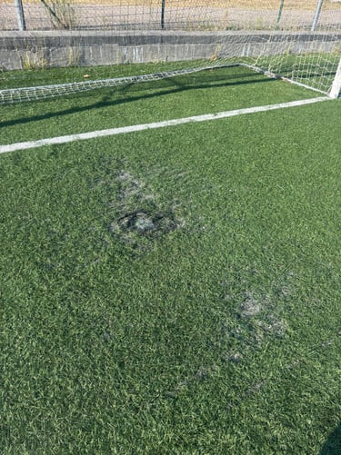 El campo presenta un desgaste evidente en la hierba, un sistema de drenaje ineficiente y zonas donde el césped se desprende y se desintegra con facilidad, lo que además provoca el taponamiento del sistema de evacuación de agua. Todo ello hace impracticable la actividad deportiva y, sobre todo, supone un riesgo para la integridad física de los jugadores.